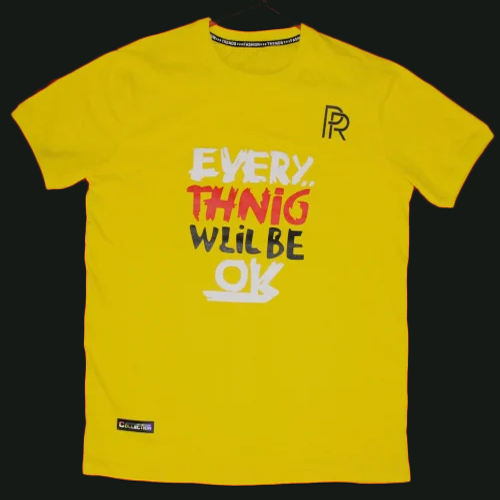 विभिन्न उपलब्ध पीले रंग की मुद्रित पुरुष टी शर्ट्स