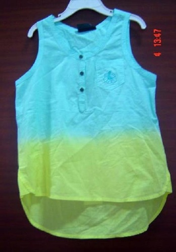 ब्लू येलो प्लेन डाइड कॉटन राउंड नेक शॉर्ट स्लीव कैज़ुअल वियर गर्ल्स टॉप