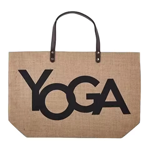 Explore in english - Yoga Tote Bag with Jute Material Leather Jute Fabric Lining Printed Flowers Letter