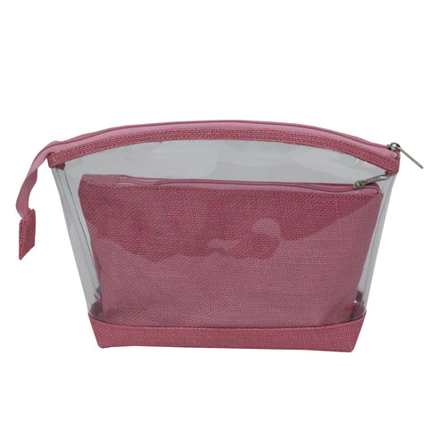 Explore in english - Zip Closure See Through Pvc Jute Travel Pouch