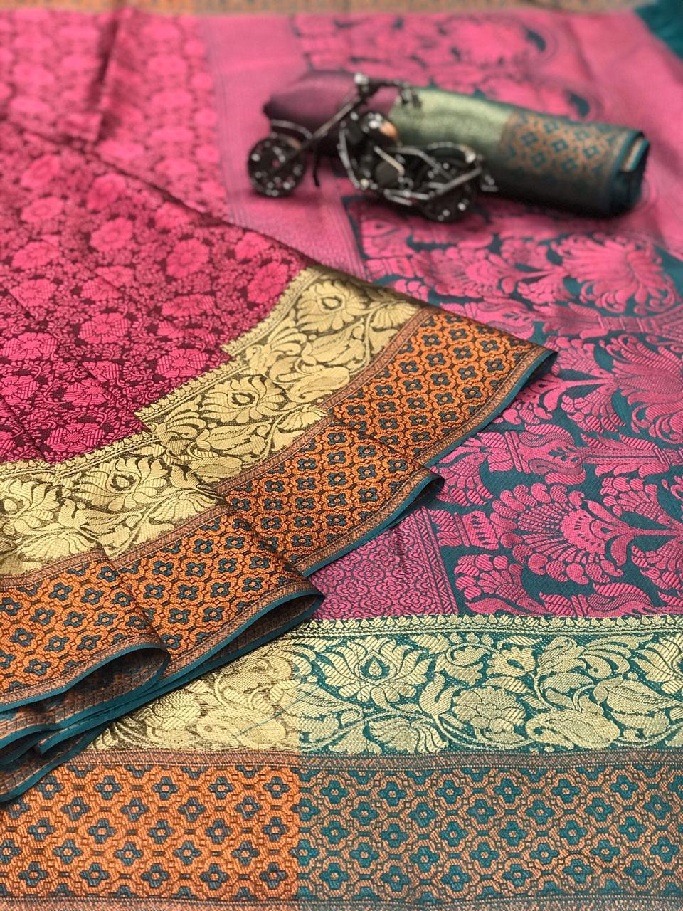 ज़ोया बुनाई कोरा मलमल सिल्क साड़ी