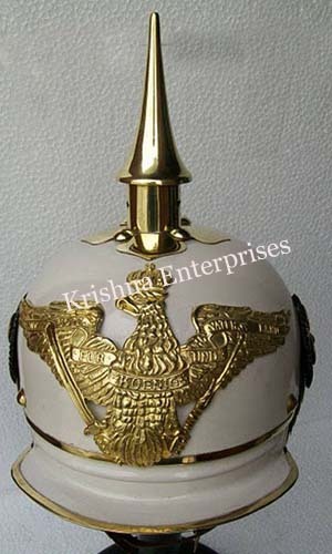 We are instrumental in trading a qualitative range of Iron Pickelhaube Helmet including Star Badge Iron Pickelhaube Helmet, Nickel Finish Eagle Helmet, Iron Eagle Badeg Pickelhaube Helmet etc.