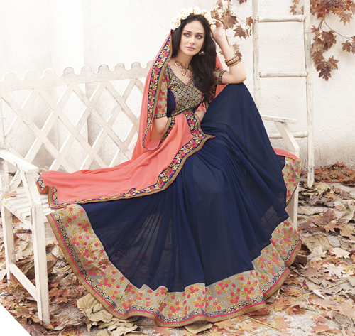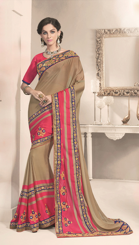 We are instrumental in trading a qualitative range of Latest Saree Collection including Orange And Navy Blue Bollywood Designer Saree, Bandhani Print Designer Saree, Floral Printed Saree etc.