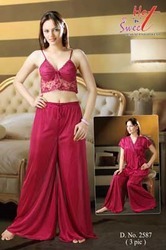 We are instrumental in trading a qualitative range of Three Piece Nighty including Hot N Sweet 9010 Maroon Three Pcs Nightwear, Hot N Sweet Beautiful 9010 E Three Pcs Nighty, Three Piece Nighty etc.