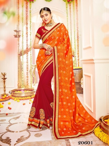 well-known saree examples include georgette embroidered sarees, Sagun silk