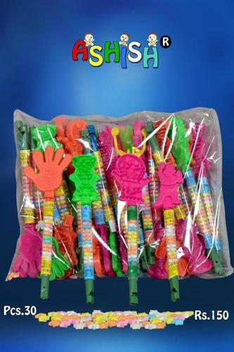 We are instrumental in trading a qualitative range of Star Candy Toys including Umbrella Jems, Saunf Candy Toy, Clapping Hand Star Candy Toy etc.