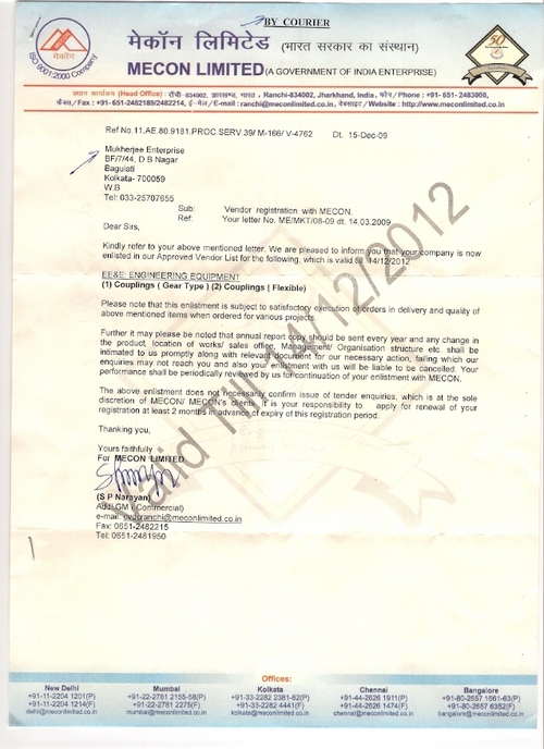 We are instrumental in trading a qualitative range of Registration Certificate including EXPORT IMPORT CERTIFICATE, DURGAPUR STEEL PLANT, Durgapur etc.