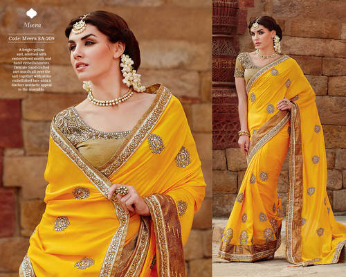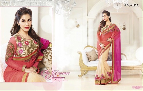 We are instrumental in trading a qualitative range of Designer Sarees including Women Designer Saree, ONLINE BUY SATIN GEORGETTE SAREES, Fancy Ladies Sarees etc.