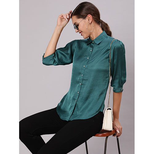 We are well established firm offering Shirts including A Green Color Silk Blend Solid Shirt With Puffed Sleeves And Front Opening, Green And White Checks Cotton Gathered Shirt, Mustard Sequins Embellished Shirt that are highly demanded among the clients.