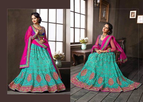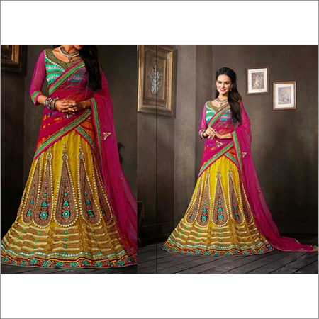 We are instrumental in trading a qualitative range of Beautiful Hand Work Designer Weddin including Pink &TurquoiseNet Lehenga Choli with Dupatta, Brown Tissue Circular Lehenga Choli with Dupatta, Maroon & Blue Net Lehenga Choli with Dupatta etc.