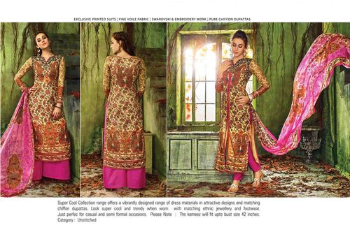 We are instrumental in trading a qualitative range of Designer Dress Material including Indian Dress Material, Stylish Dress Material , Exclusive Unstitched Salwar Suit etc.