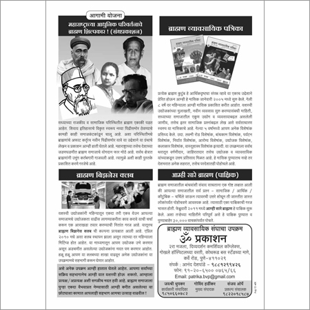Established in 2005 , OM PRAKASHAN has made a name for itself in the list of top service providers of Activities ,Book Publishers ,Brahman Business Conference in country. OM PRAKASHAN is listed in Trade India's list of verified companies offering wide array of Our Activities ,Brahmin Books ,Brahman Business Conference etc. Contact here for Activities ,Book Publishers ,Brahman Business Conference in Pune, Maharashtra.