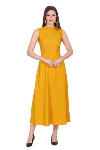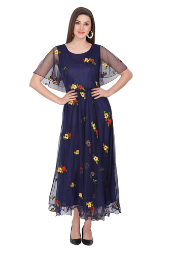 Ladies Casual Wear Blue Printed Crepe Gown Maxi Dress