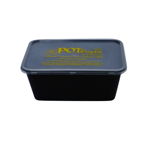 1000ml Black Biryani Box - High-quality Plastic, Disposable Design | Customizable Logo, Elegant Printed Style For Food Packaging