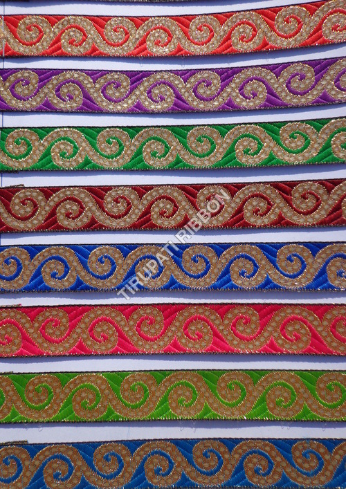 Tirupati Ribbon, Established in 1987 at Surat in Gujarat, is a leading Manufacturer,Supplier of Ribbons & Laces in India. Tirupati Ribbon is one of Trade India's verified and trusted sellers of listed products. With extensive experience in supplying and trading 3/4" fancy jacquard lace1, Tirupati Ribbon has made a reputed name for itself in the market with high-quality 1 Inch Lagdipatta Ribbon, 1 inch gotapatti ribbon, 1" METALLIC JACQUARD LACE1, etc.