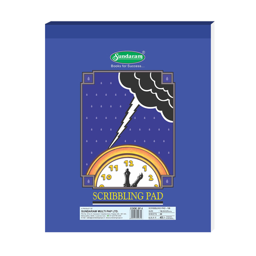 Sundaram Scribbling Pad - 64 Gsm Paper, 18.5 X 21.5 Cm | Durable Top Binding, 80 Pages, Superior Finish