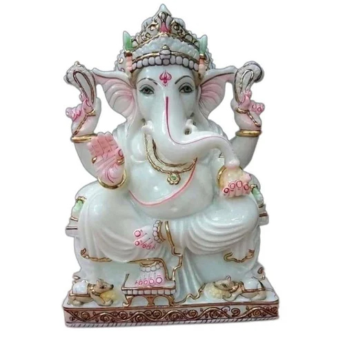 7 Inch Marble Ganesh Statue - Marble & Dust Marble, Customizable Color And Size | Polished Finish, Indian Regional Style For Home And Outdoor Decoration, Religious Activities