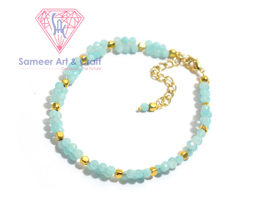 Amazonite Gemstone Gold Plated Handmade Adjustable Beaded Bracelet - Brass Material, 3-4 Mm Roundel Shape, 7.5+2 Inches Adjustable Length
