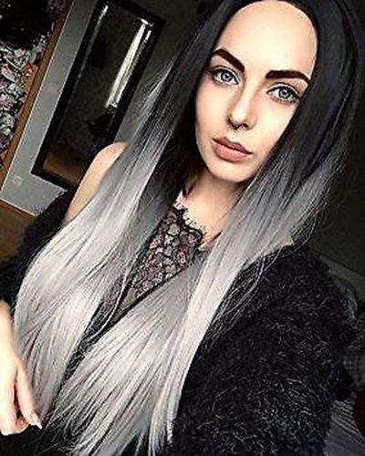 Black Silver Ombre Straight Wig Length: 10-25 Inch (In)