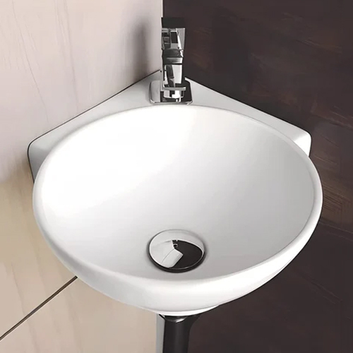 Ceramic Corner Wash Basin - 12 Inch Round, Gloss Coated White, Durable Wall-mounted Design