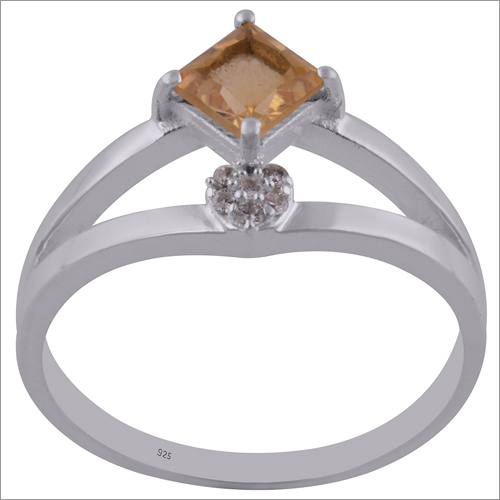 Citrinewhite Cubic Zirconiz Gemstone 925 Sterling Solid Silver Square Cut Stone Handmade Ring