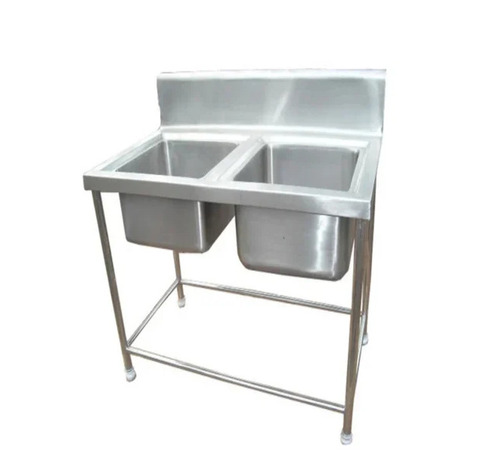 Commercial Ss Double Sink Unit - Stainless Steel, Double Bowl, Rectangular, Matt Silver, Top-mount With Center Drainer, Rust Free