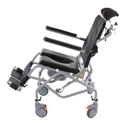 Commode Chair With Foot Rest - Steel Iron, Foldable Design, Silver & Black Color | Durable Hospital Furniture For Commercial Use