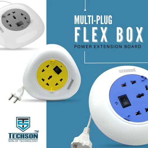 E Square Electrical Flex Box - Abs Material, Round Shape, 3 Sockets, Current 15 A, Wire Length 4.7 Mtr, Color White/yellow/brown | Protection Level Ip65