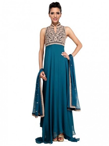| Features | Elegant design, Zari and Kundan work, Georgette fabric, Sleeveless style, Matching dupatta, Anarkali silhouette, Comfortable fit, Rich look |