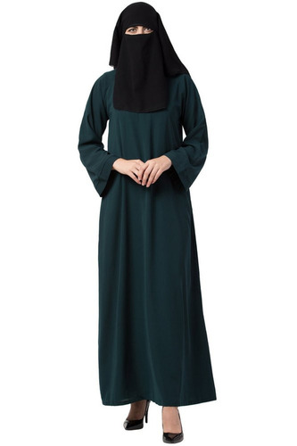 Bottle Green Nida Matte Long Sleeve Abaya - Long Length, Regular Fit, Anti Wrinkle And Breathable Design, No Pockets, Casual Wear