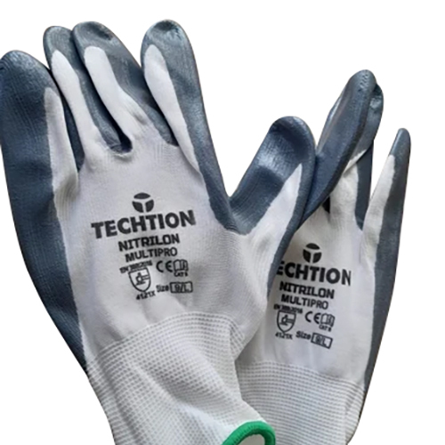 Techtion Half Dipped Nitrile Gloves - Nylon Fabric, Full Finger, Disposable | Cool Pass, Breathable, Excellent Grip For Electricians