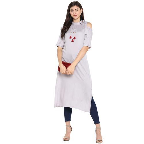 Ladies Plain Rayon Kurti - Size S To Xxl, Length 44 Inch, Color Grey | Soft Rayon Material, Cut Shoulder Design, Casual Ethnic Style