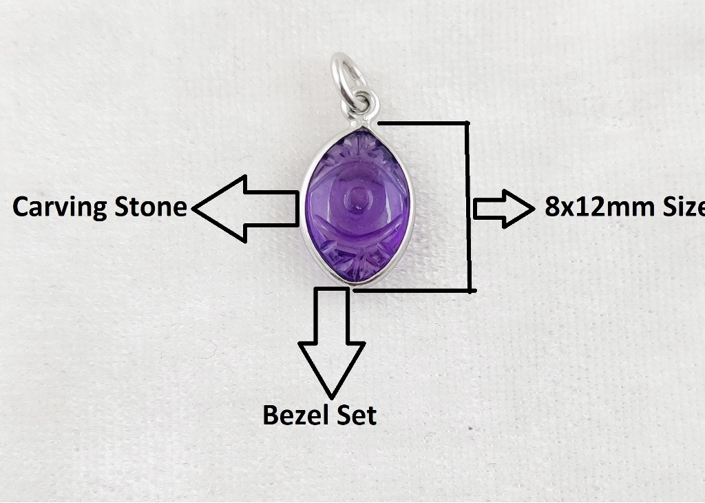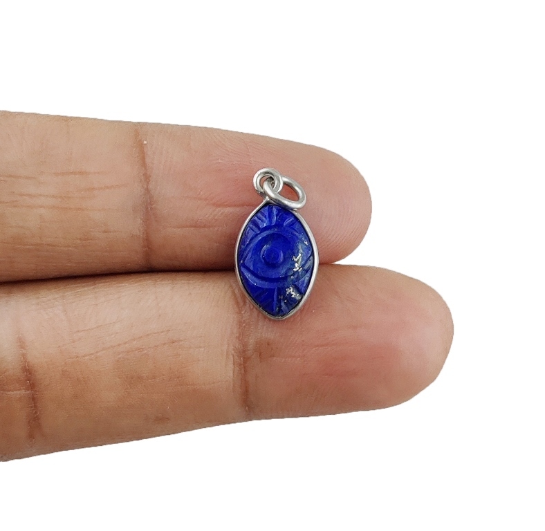 Same As Photo Lapis Lazuli Evil Eye Carving Sterling Silver Marquise Shape 8x12mm Charm