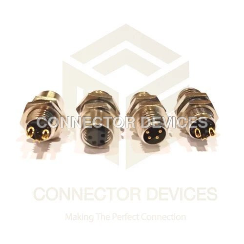 M8 Male Panel Type Straight - Metallic Metal, 3 Pin & 4 Pin, Pa66 Material, 60v Voltage, 4 Amp Current Rating | Industrial Application, Straight Male End Type