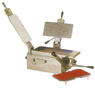 CTF- Manually operated capsule filling machine is designed to serve the need of R & D purpose, small oatches, trail run for large scale as well as regular Droduction in small scale pharmaceutical companies.The machine is easy to operate gives production with minimum rejection and no weight variation. It is capable :ofill powders, pellets in all sizes of Hard Gelatin capsules. SPECIFICATIONS Output : 6500 to 7000 capsules/hr. Length : 405mm Width : 300 mm Height : 455 mm Weight : 40.0Kgs.