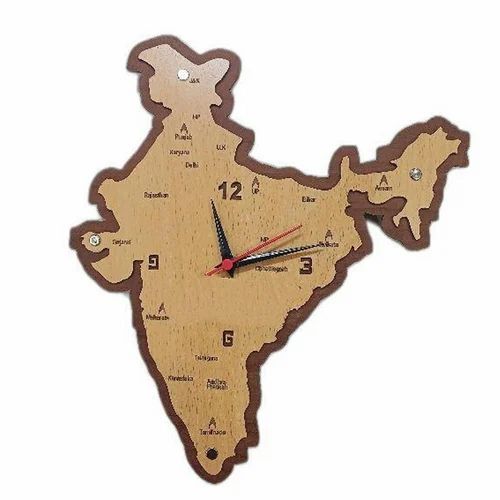 Map Shape Wooden Clock - Wooden, 8 Inch Size, Brown Color | Analog, Good Quality, New Condition