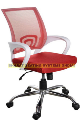 Revolving Office Chair - Medium Back, Fiber Arms, High Density Foam, 27 Inch Height, Red Mesh Fabric | Easy To Clean, Push Back Mechanism, Gas Lift, 5-leg Metal Stand With Nylon Castors