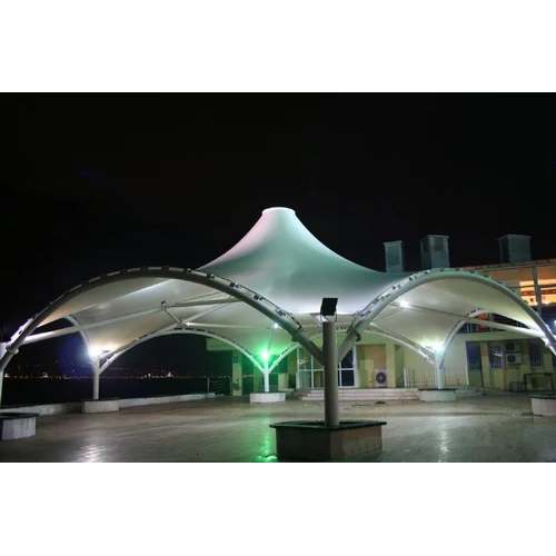 Modular Tensile Gazebo Structure - Tensile Fabric, White Color, Waterproof Design, Customizable Size Options | Ideal For Commercial Spaces