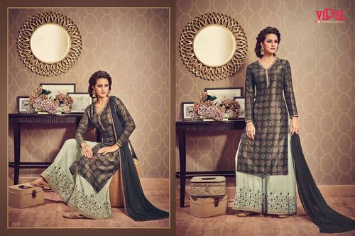 | Features | Elegant Style, Pure Silk Top, Crepe Bottom, Chiffon Dupatta, Embroidery Work, Palazzo Design, Comfortable Fit, Stylish Look |
