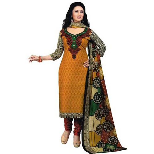 | Features | Stylish design, Elegant look, Comfortable fit, Heart neck, Alluring border, 3/4 Sleeves, Mustard color, Matching dupatta |