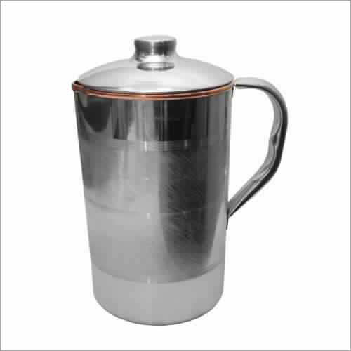 Stainless Steel Copper Jug - 1250ml Capacity, Handmade Pure Copper, Round Shape, Silver Color, Copper Warranty, Hard Hardness, 23 Thickness