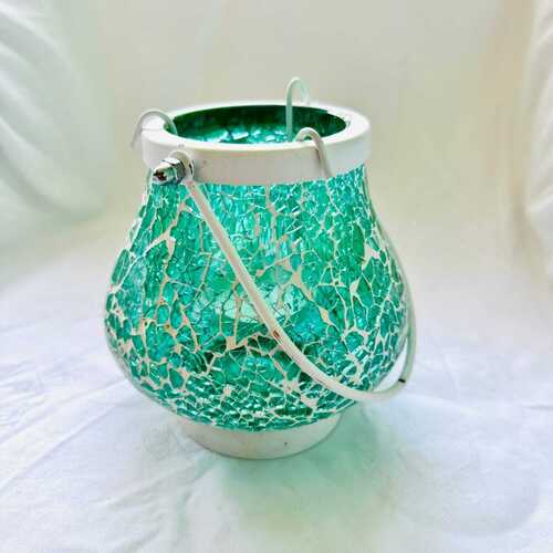 Iron Hanging Lantern - Handmade Blue Mosaic Design, Perfect For Home Decoration And Thoughtful Gift