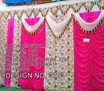 Amar Textile is a Surat-based manufacturer and wholesale supplier of decorative fabrics used in mandap, tent, and event decoration setups. We specialize in producing high-quality ceiling fabrics, pardaa fabrics, and customized event textiles designed for durability, finish, and consistent color performance.