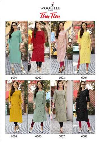 Wooglee By Tim-tim - Heavy Rayon, Sizes: M(38), L(40), Xl(42), Xxl(44), Xxxl(46) | Embroidered Design, 3-4th Sleeve Style, Washable, For Ladies, All Seasons