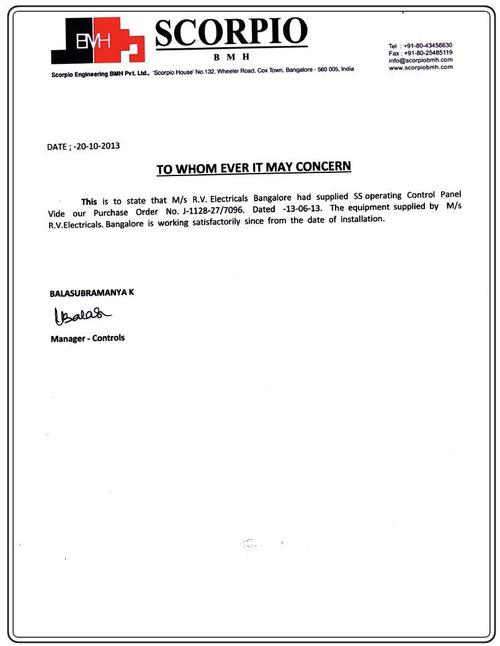 We are instrumental in trading a qualitative range of Appreciation Letter including Challenger Electric & Automation, Hygienic air Systems Pvt Ltd, Hygienic air Systems Pvt Ltd etc.