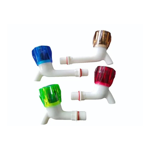 Leak Proof PVC Bib Cock - PVC Material, Round Shape, Glossy Finish | Color: Red & White, Corrosion Resistant, Ideal for Bathroom Fitting