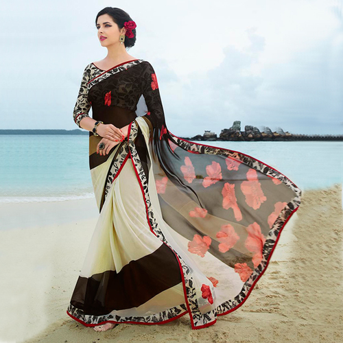 We are instrumental in trading a qualitative range of Georgette Printed Saree including georgette saree, Georgette printed designer saree, Designer Printed Saree - Bamberg Georgette & Art Banglori Silk Blouse, Multicolor, Bollywood Style for All Seasons etc.