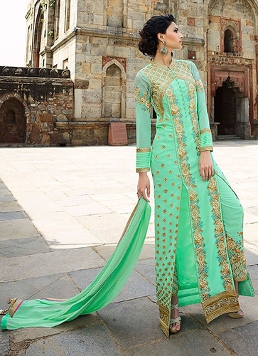 We are instrumental in trading a qualitative range of Churidar Suits including Prodigious Blue Georgette Churidar Suit, Stylish Magenta Georgette Palazzo Churidar Suit, Modernistic Medium Spring Green Georgette Churidar Suit etc.