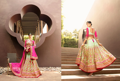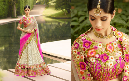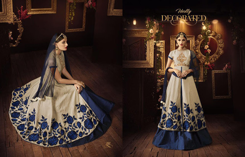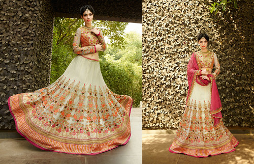 We are instrumental in trading a qualitative range of Designer Lehengas including Sumptuous Embroidered Work Satin A Line Lehenga Choli, Utmost Magenta Brocade Lehenga Choli, Topnotch Off White Georgette Lehenga Choli etc.
