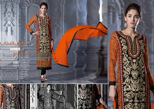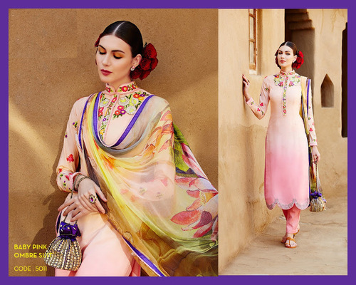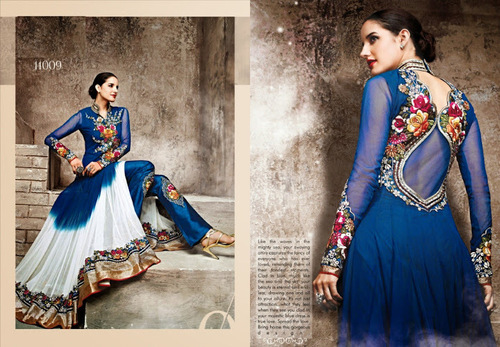 We are instrumental in trading a qualitative range of Designer Suit including Unique Net Anarkali Salwar Suit, Karishma Kapoor Hot Pink Georgette Gown Style Anarkali Suit, Extraordinary Embroidered Work Designer Suit etc.